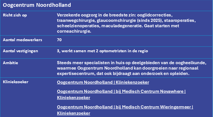 We werken samen met het Amsterdam UMC. Meestal worden we benaderd door een oogarts die betrokken is bij de coassistent. Maar het blijft bij een informele samenwerking. Wij zouden de relatie liever formaliseren en bijvoorbeeld ook arts-assistenten opleiden en begeleiden. Met Hogeschool Utrecht hebben we een overeenkomst, het zou heel mooi zijn als we een dergelijke overeenkomst ook kunnen sluiten met het Amsterdam UMC.